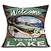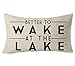 Ramirar Word Art Quote Life Is Better At The Lake Blue Retro Background Travel Tourist Summer Inspirational Throw Pillow Cover Cotton Linen Square 18 x 18 Inches