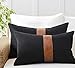 2-Pack of Faux Leather and Cotton linen Pillow Cover, size 12x 20 inch (Does not include pillow inserts).
