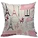 LINEN MATERIAL - This HOSNYE Pink Eiffel Tower Pillow Cover Using bright and soft PILLOW COVER SIZE - 18 x 18 inch, perfect fit for your 18 x 18 pillow inserts en material, thick and comfortable