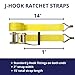 DURABLE: corrosion-resistant, zinc-plated steel ratchet & J-hook fittings
