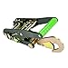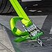 UNIQUE HIGH-VIZ WEBBING - Flexible 1-ply 2 inch wide Ultra-bright neon green straps are extremely visible in daytime light conditions, and the special retro-reflective fibers shine brightly at night for extra visibility in low light conditions. This extra thick tie down webbing has excellent durability and long service life. Each strap includes a full body cordura wear pad for even more abrasion resistance, which provides longer strap life and protects the vehicle from inadvertent scratches.