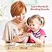 Wooden Spelling Toy: Includes a wood tray, 5 Handheld Sets of Rotating Blocks with 3-letter word movable blocks. Along with 48pcs sight words flash card (24 pcs foldable word 2-in-1 cards, 24 pcs word cards). Appropriate for teaching very basic reading skills.