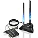 🖥️【High-quality experience】The PCI-E wireless network card has a high-quality heat sink device, which can keep the temperature of the network card normal without affecting the operation of the network card, bringing you a better and high-quality experience. Two external high-gain antennas would also help better.