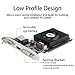 【Low Profile Design】The computer graphics cards is small in size,saves more space and is easy to install.It’s designed for full size case installations,and also you can build a compact PC system easily even compatible with ITX case(with low profile bracket).This low profile, low power consumption card will improve multimedia performance, extend the desktop, and accelerate apps.