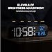 【Automatic Brightness Dimmer】Touch the button of the alarm clock to adjust the brightness of 5 levels, It also can automatically convert brightness in different time period, smart to provide you with the needs.