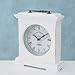 Durable white-painted metal casing with brass-plated bezel; classic analog design with black face and white numerals