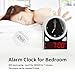 Clock for bedroom - There are 3 levels of brightness for your options (day time), high/middle/low. The clock will enter into Night-mode and dim automatically at 8:00pm~6:00am to protect your eyes at night and save energy. No blinding lights or any annoying sounds disturb your sleep, create an peaceful environment for sleep. Perfect alarm clock for bedroom, beside, nightstand, desk, shelf and table.