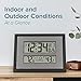 Monitors indoor and Wireless outdoor temperature (F/C) with trend arrows; Wall hanging or free standing and Low battery icon for clock and sensor