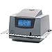 Electronic time recorder logs date and time on incoming, interoffice and outgoing correspondence, using 14 selectable messages. Use as a time clock to record hours worked. Time recorder tracks time for job studies, employee performance and in-plant operations. Print in AM/PM or military time. Time recorder automatically resets to correct time in event of power failure. Light-duty time recorder offers an unlimited employee capacity.