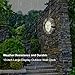 Temperature and Humidity: Large wall indoor outdoor clock with built-in thermometer and hygrometer. Precise quartz sweep movement guarantees accurate time and completely silent environment.
