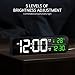 Adjustable brightness and volume: The clock features 6 levels of brightness and 4 levels of volume, allowing you to adjust the settings to your liking. You can easily adjust the brightness by touching the light button, and the brightness will automatically adjust with the change of time.