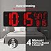 JUMBO DISPLAY WALL CLOCK WITH AUTO-DIMMING ----- 16.5" extra large LED display with big bold digits make it much easier to read anywhere in the room. This big digital wall clock can show the time, date, month, day and temperature, bring you clear and comfortable visual sense. Auto dimming based on the light levels, no glaring light at night but bright enough to read time.