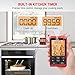 4 Color Coated Probes: BBQ thermometer equipped with different color probes to distinguish different type of meats, monitor the temperature and taste for 4 meats simultaneously, cooking becoming more efficient!