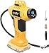 【10000mAh BATTERY & 12V DC DUAL POWER】: The air compressor portable features a dual-power design that allows you to switch seamlessly between cordless and power supply modes. Equipped with a high-capacity 20V rechargeable 10000 mAh Li-ion battery. In case the battery runs out, the pump comes with a 13.1 Ft DC 12V power cord that enables you to power it by connecting it to your car. You don't have to worry about it running out of battery during the trip.