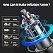 Powerful & Efficient: With a maximum inflation pressure of 180 PSI and airflow up to 50L/min, this tire inflator quickly inflates car tires in just 150 seconds, outperforming conventional pumps