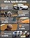【Wide Application, Meet Various Needs】 Featuring a durable and solid premium aluminum alloy shell, this portable air compressor has a longer life span. It can pump up not only balls, bicycles, e-bikes, motorcycles, cars, SUVs, off-road vehicles, but also for those with up to 26.3 inch tires, such as some RV, MPV, ATV and so on. (Note: if for exercise balls, inflatable toys, it may not auto off, and you need to turn off it after full inflation).