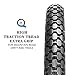Classic knobby tread,provides good grippe on uneven surfaces like tarmac roads or pavement