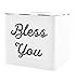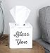 FARMHOUSE DECOR: Rustic country style distressed enamelware cube tissue box holder with the words “Bless You”