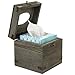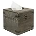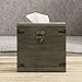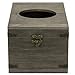 Square vintage gray wooden tissue box holder with an antique style hook lock latch