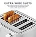 EXTRA WIDE TOASTER SLOTS - Accommodate various types of breads, pastries, waffles and bagels with wide slots that measure 1.38" x 5.50".