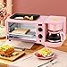 【Wider Application】The 3 in 1 breakfast machine can make cakes, sausages, steaks, coffee, tea at once, widely used for breakfast, brunch and supper. It’s a perfect appliance for family, student, hiker, camper at outdoors, home, office, little room, etc. The breakfast center is made of high-quality aluminium alloy material, durable for long service life.