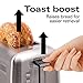 Toast boost: the toaster has a toast boost feature that lifts foods a little higher when you need it for easy removal, Great for smaller items like English muffins.
