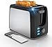 Sleek stainless steel Toaster 2 slice with wide slots and LCD display panel 6 browning levels for toasting and defrosting bread, bagels, waffles