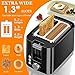 EXTRA WIDE SLOTS: 2 extra wide slots easily auto-adjust to fit all types of foods from the cabinet or freezer. Toast anything from thick artisanal breads, bagels, muffins, buns, to thinly sliced snacks such as pop tarts, pancakes and waffles
