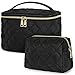🌼 ✨【Portable Lightweight Design】This cosmetic bag is designed by unique embroideryn. When the makeup bag is empty, you can simply put it into your handbag/Luggage since its soft fabric. While you carrying it, a durable, tough, double-layer PU leather handle will offer you a comfortable experience. At the top and the bottom there contain both hard-shell layers in order to reduce collisions.
