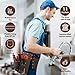 ✔️ Carry More Tools: The tool belt has 18pockets including 4 screwdriver sleeves, 3elastic loops, 2 tape clips, & 2 hammer holder for tool belt.