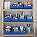 EFFICIENT- Sized to fit on 12-Inch or 18-Inch deep wire or steel shelving, bins nest when not in use to save space. Same width bins stack on top of each other, wide hopper front provides easy access, unique post and rib design allows bins to stack securely and nest for compact storage, interior corners are rounded and tapered
