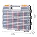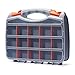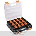 Made of durable and heavy duty plastic material. Double side design with professional looking. An attractive color combination in grey body, clear lids, orange closure and divider pieces