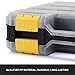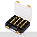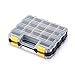 Made of durable and heavy duty plastic material. Double side design with professional looking. An attractive color combination in black body, clear lids, yellow closure and divider pieces