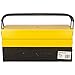 Includes an extra-large deep bin for safe and convenient storage of power tools and hardware, a medium-sized tool box with removable tote tray ideal for storing hand tools and a shallow tool box for small parts and accessories