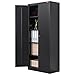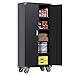 🗄️【High-Quality Materials】: This tall cabinet with doors and shelves is made of cold-rolled steel, with a reinforced structure that makes the metal cabinet more sturdy and durable. The black cabinet is coated with durable electrostatic powder, which makes cleaning it more effortless.