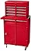 2-SECTION DETACHABLE RED TOOL STORAGE - The tool trolly has 2 detachable modules: an upper tool box and a lower module with 2 drawers. Side locks hold the modules into place.