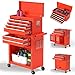 🎅【Convenient mobile】The tool chest has 4 universal casters, 2 with anti-skid locks to ensure safe and stable operation. You can move it without any effort with handle on the side and the top handle brings you much convenient to carry the toolbox. (top cabinet can be placed in the bottom cabinet, effectively using the storage space and easy to move)
