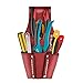CONVENIENT : This 5 pocket leather tool pouch with electrical tape chain. Ideal for estimating, troubleshooting, trim out and more. Includes a pocket suitable for most compact testers.