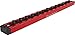 PACKAGE CONTENTS: Socket storage rail package includes (1) socket organizer red aluminum sockets organizer rail with clips – (1) 3/8-inch drive rail and 16 clips