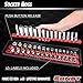 STAY ORGANIZED: Use the ABN Red Aluminum Socket Rail Tool Socket Organizer Tray 1-Pack SAE 3/8 Inch Socket Holders Organizers Rail and 16 Socket Clips to better organize your tool parts; This socket set organizer accepts both shallow and deep sockets