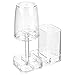 MULTIPLE COMPARTMENTS: This convenient stand features 4 sections to keep your toothbrushes separated and in their place; The unique design provides you with a rinsing cup for drinking water, holding mouthwash or rinsing, when not in use it serves as a hygienic covering for your toothbrushes; The vertical format saves space and keeps your toothbrushes and tumbler organized and ready to use