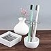 COMPACT STORAGE: This ceramic holder is slim and compact so brushes can stand vertically in the corner of bathroom sinks or inside medicine cabinets; Keep bathrooms neat and tidy by organizing your dental essentials with this sturdy holder; Minimalistic holder can be used for toothbrushes as well as other small accessories; Put these holders out when friends and family visit overnight