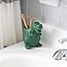 🦖 APPEALING LOOK: This adorable toothbrush and thin brush holder features a dinosaur-shaped ceramic cup in a pastel, green matte glaze. If your kids are obsessed with dinosaurs, they are going to love seeing this dino on their vanity or desk. The teeny T-Rex has an inviting look, super cute, short arms, and a face that appears to be smiling, while eagerly awaiting to hold your brushes. Simple, but delightful, this ceramic dinosaur cup is any parent’s friend
