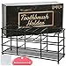 VALUABLE SET - Our stainless steel toothbrush organizer measures 8.3 x 3.9 x 2.3inches, composed of 6 toothbrush slots (1 x 1inches) and 2 toothpaste slots (2.1 x 2.4inches), anti-slip rubber pads at the bottom. Additionally, we attached one toothpaste squeezer (3.5 x 1.4inches, comes in random color) and one adhesive toothbrush holder (2.3 x 2.3inches) in a delicate gift case (8.6 x 2.5 x 4.3inches) for free.