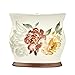 Glazed ivory with a watercolor-like floral design and antique bronze trim