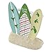 FEATURES: The Avanti Flamingo Jingle Toothbrush Holder features 3 colorful surfboards decorated with holiday icons standing in a sand base. Holds three toothbrushes, pens, pencils, kitchen tools, etc. to organize your things with style.