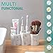 VERSATILE BATHROOM COUNTERTOP ORGANIZER: Bathroom organizer helps you keep your bathroom countertop neat and tidy by storing toothbrushes, electric toothbrushes, razors, dental floss, toothpaste, combs, tweezers, and eyebrow trimmers.