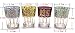 --- Set of 4 shot glasses with gold lines, large lazy shot glasses for small drinks or a shot of something, each tea glass has a different colorful print, bright and fun, Moroccan tea glasses sure to make everyone enjoy the celebration.