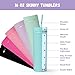 AMAZING MATERIAL: Skinny tumblers with lids and straws come with a splash-proof screw top lid to minimize leakage, and matte pastel tumblers made of food-grade plastic, BPA-free.The amazing soft touch rubber matte pastel colored cute tumblers work great with vinyl decals, trendy colors and a delicate feel to help add a fun touch and make your daily drinking rituals even more joyful!