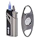 [All-in-one Function Design]: Sturdy zinc alloy material body, which is more durable and sturdy compared to other materials, Super firepower, jet blue flame butane torch and windproof, stainless steel cigar V cutter and cigar punch, which adds extra convenience for cigar lovers, No need to carry around other cigar accessories for a perfect cut and smoke.